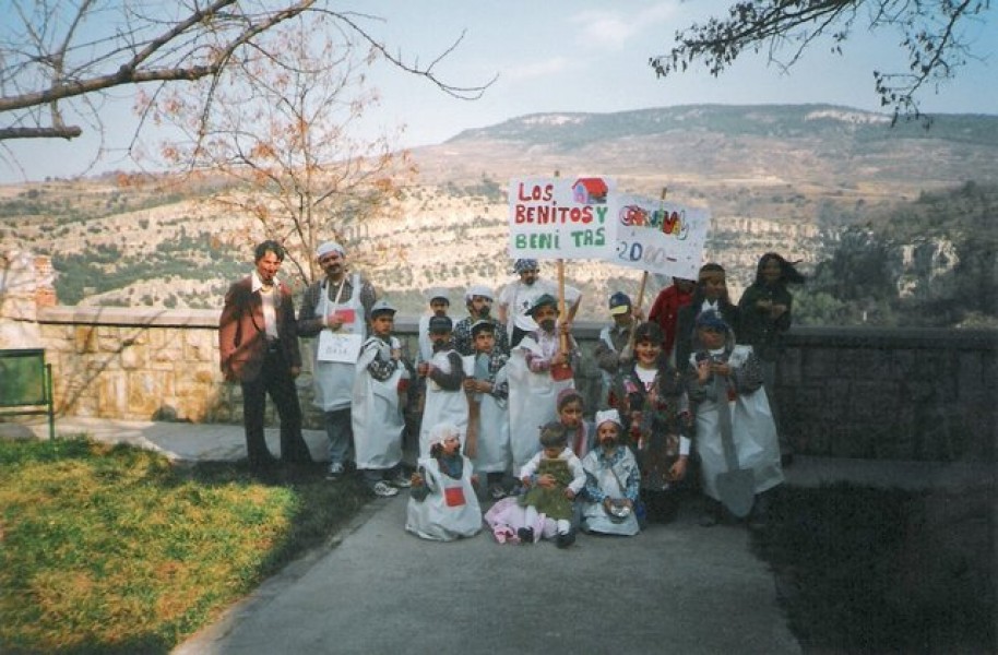 Alumnos y profesores de Villarluengo celebrando el carnaval del 2.000