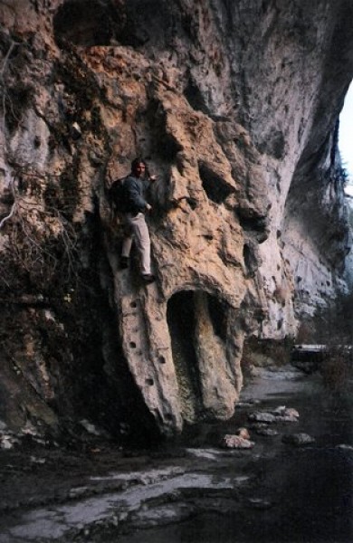 Chimenea en nacimiento del Pitarque.Hay que verla cuando baja agua por ella.