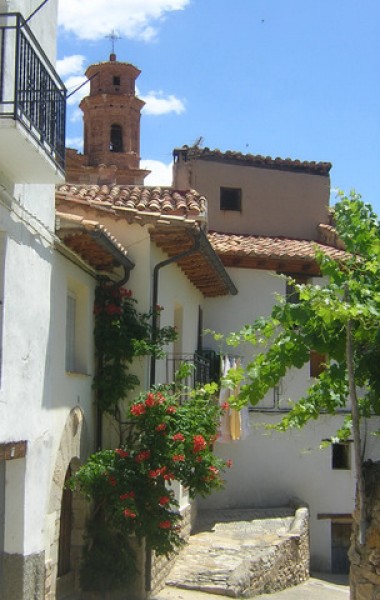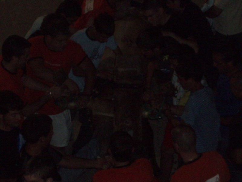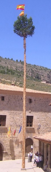 A la derecha los futuros emboladores de villarluengo Alejandro y Luis colocando la bola al toro