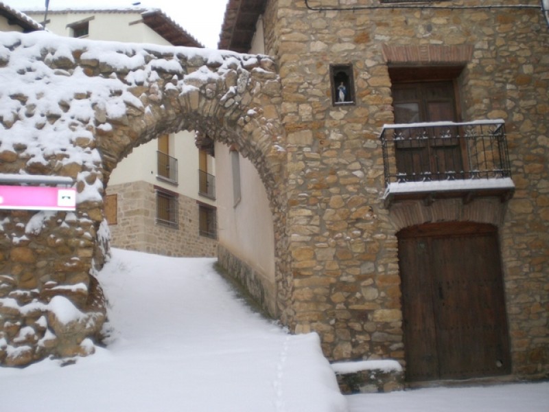 El arco de muralla nevado
