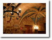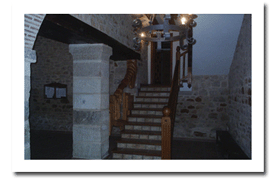 Como entrada a la Casa Consistorial nos encontramos un arco de medio punto que tenemos que cruzar para admirar un trabajo del escultor Francisco Plana, hijo de esta localidad, se trata de la decoración del comienzo del barandao que nos da el acceso a las escaleras por las que se accede al piso de arriba. Frente a estas escaleras esta situado el antiguo calabozo, a demás de a una pequeña capilla.