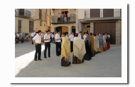 Por la tarde se baila el Reinau, que es el baile típico de Villarluengo, que llama mucho la atención por la vestimenta. Y después los quintos hacen el sorteo de un cordero.