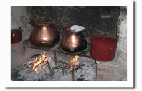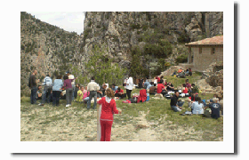 Después de un cuarto de hora más se llega por fin a la ermita. Es uno de los momentos emocionantes del día, acompañado de los cánticos que en ese momento resuenan más fuerte que nunca. Pasados unos minutos de refrigerio empieza la misa y después la comida. La cofradía proporciona gratuitamente a todos los asistentes las tradicionales y exquisitas judías con arroz. Y también café, coñac y pastas.