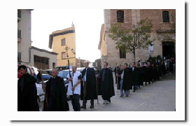- Vestimenta: Los cofrades hacen todo el recorrido con unas tradicionales capas negras, dignas de toda admiración.