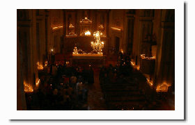 Y para acabar se entra en la Iglesia. Es el día que más bonita está e impresiona realmente verla. La luz de las velas colocadas y su decoración hacen que la Iglesia de Villarluengo esté especialmente preciosa la noche de San Marcos.